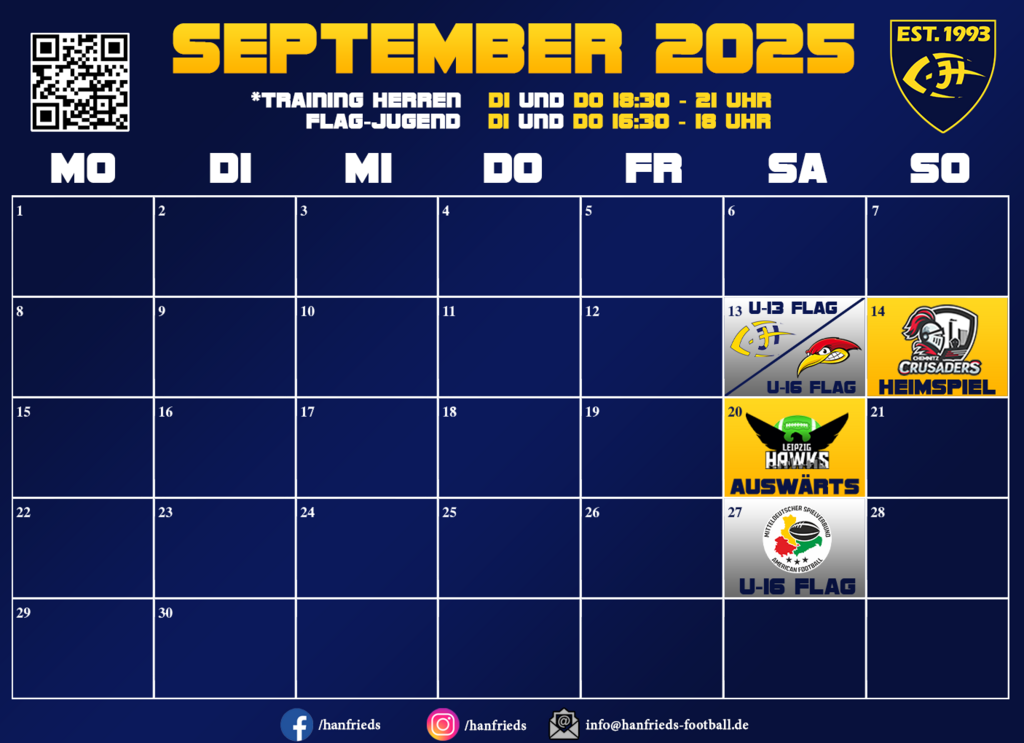 ⚠️Im September endet leider schon wieder die Football-Saison all unserer Teams. Hier unser Monatsüberblick ⚠️