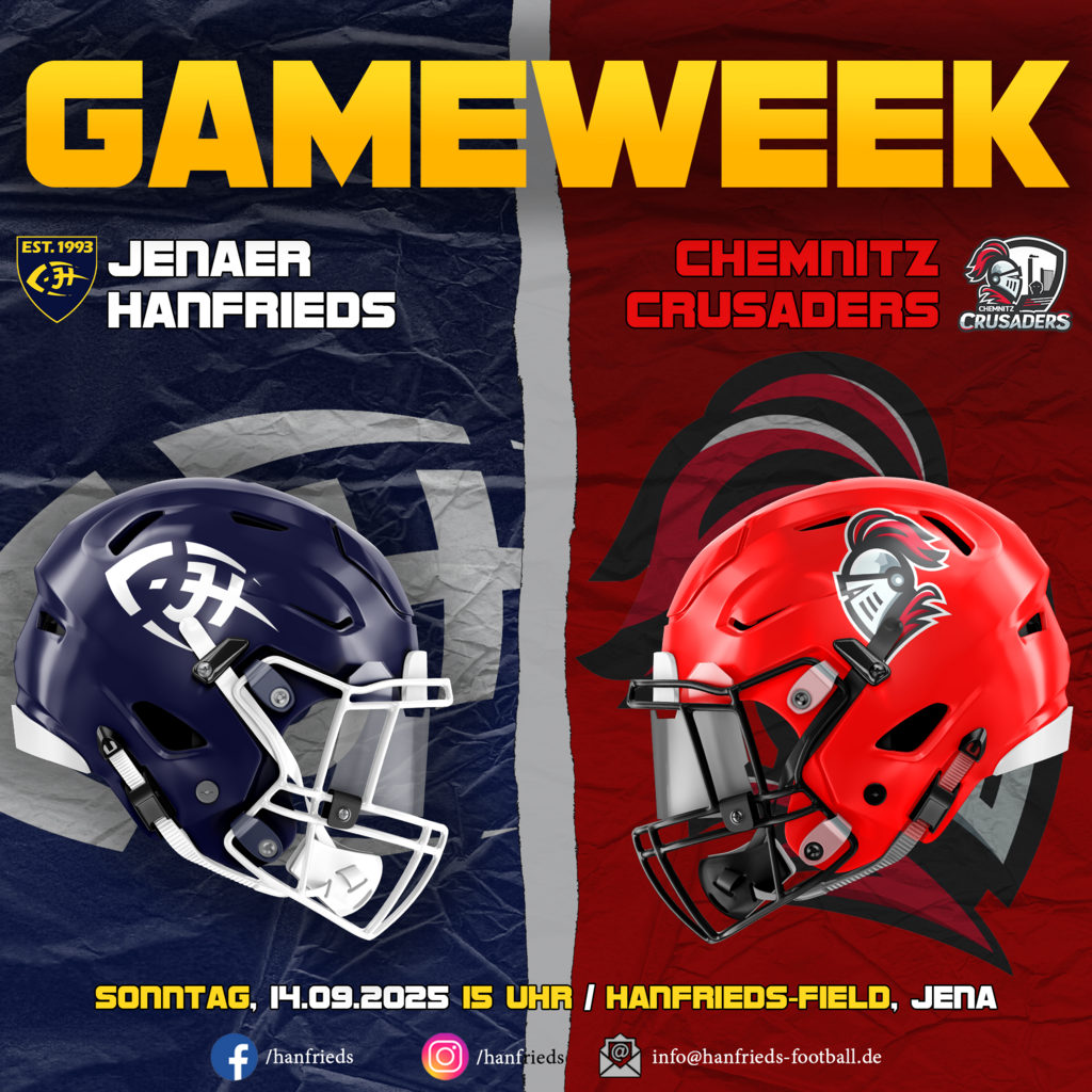 Sonntag, 14.09.: 9. Saisonspiel und damit letztes Heimspiel der Herren in Jena gegen die @chemnitzcrusaders.